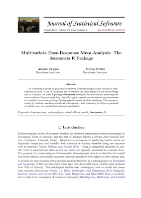 We describe the main aspects of the methodology and illustrate the novel R package dosresmeta developed for multivariate dose-response meta-analysis of summarized data.